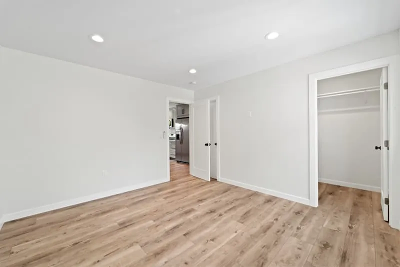This beautifully crafted 2-bedroom, 2-bathroom detached ADU perfectly balances modern comfort and timeless charm. The open-concept living space is enhanced by natural light and warm wood-look flooring, creating a bright and inviting atmosphere. The kitchen features stylish gray cabinets, sleek quartz countertops, a subway tile backsplash, and stainless steel appliances, blending function with elegance. Both bedrooms offer ample space and storage, while the bathrooms boast contemporary vanities, black fixtures, and a spa-like glass-enclosed shower. Thoughtfully designed for comfort and efficiency, this ADU also includes a private entrance and a functional layout that maximizes every square foot.